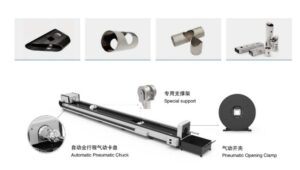 Pneumatic clamping, with large and constant clamping force, ensures that the pipe is not loose and does not slip, and ensures the cutting accuracy; the concave wheel support frame is prepared to prevent the pipe from sagging and deformation, improve the cutting accuracy and extend the service life of the chuck.